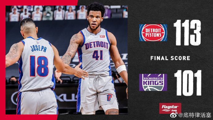 活塞(16-36):约瑟夫24分4板7助,斯图尔特16分13板4助,萨迪克-贝12分5板,约什-杰克逊10分7板,海耶斯11分3板,迪亚洛10分3板,史密斯8分4助,奥卡福11分3板3助,敦布亚6分3板。