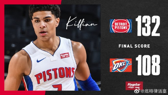 JRS直播网讯 4月6日讯 今日NBA常规赛,活塞迎战雷霆,活塞上场44分不敌尼克斯,而雷霆则48分不敌开拓者,双方今日均渴望获得一场胜利。比赛开始后,活塞迅速找到进攻状态,接连打出进攻高潮迅速将分差拉大,雷霆虽有调整,首节结束仍落后活塞11分。第二节前半段,活塞延续首节进攻火力,分差最多时已经来到23分,雷霆外线手感逐渐回暖,半场结束,活塞58-47依然保持11分领先。易边再战,活塞内外兼修持续发力,不断扩大领先优势,雷霆进攻受阻,三节战罢,活塞将领先优势扩大至16分。最后一节,活塞主力没有登场,雷霆进攻效率依然不高,活塞一度将分差扩大至27分,比赛早早失去悬念。最终活塞132-108轻取雷霆。