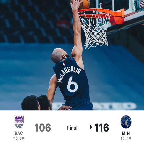 JRS直播网讯 4月6日讯 NBA常规赛,森林狼主场迎战国王。森林狼目前稳居联盟倒数第一,状元爱德华兹越打越好,但球队战绩再次直奔状元签而去。国王遭遇了一波三连败排在西部倒数第四,福克斯状态起伏较大,但哈利伯顿在三球赛季报销后高居新秀榜首位。本场比赛,因伤缺阵26场比赛的拉塞尔将迎来复出。一开场,两队进入状态很快,场上球员均有得分,比分一直紧咬,国王领先3分结束首节。次节比赛,森林狼先送一波进攻高潮,福克斯连得11分帮助国王扳平比分,两队55平进入下半场。易边再战,两队依然打得难解难分,巴恩斯和唐斯展开对飙,三节打完双方战成82平。末节争夺,拉塞尔突然发力连得10分帮助森林狼取得领先,唐斯帮助球队把优势保持到最后。最终森林狼战胜国王,送给对手四连败。