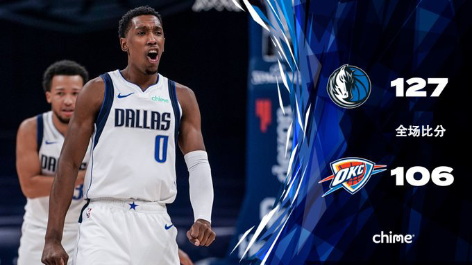 JRS直播网3月30日讯 雷霆今日坐镇主场迎战独行侠的挑战,东契奇和波尔津吉斯伤停后双双回归。面对几乎全是新秀或者新人的雷霆,独行侠上半场优势并不明显,虽然首节他们便取得9分领先,但随着雷霆的替补阵容爆发,独行侠的优势很快被抹平殆尽,不过独行侠节末也在替补阵容的爆发中重新打开局面,小哈达威最后时刻连砍8分带队拉开比分并取得8分领先进入下半场。第三节雷霆抢开局并迅速控制比赛,东契奇联手波尔津吉斯开局连拿10分迅速确立起两位数的领先,节末独行侠虽然遭遇接近4分钟的得分荒,但雷霆没能抓住机会攻势同样不佳,独行侠感受不到任何压力并带着17分的领先进入第四节。末节开局独行侠早早杀死比赛悬念,开局一波14-4的进攻将优势拉大至27分早早锁定胜局。最终,独行侠客场兵不血刃轻取雷霆结束2连败。