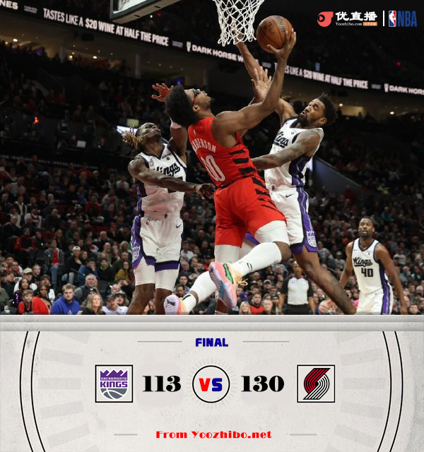 JRS直播网 12月27日讯 NBA常规赛,开拓者主场迎战国王,开拓者目前7胜21负排在西部第14位,国王则是17胜11负高居西部第4位。比赛上来,小萨博尼斯就在内线连砍7分助队反客为主打出10-2不错开局,布罗格登联手格兰特回应9-0咬住比分,双方展开胶着拉锯战,西蒙斯接连三分,麦基接连暴扣回应,首节国王领先1分,次节开拓者多点开花,里斯和沃克都成为替补奇兵,亨德森也有炸裂暴扣,开拓者打出14-2进攻波一举确立领先,福克斯站出来里突外投连砍10分止血,半场国王落后7分。下半场,小萨博尼斯和巴恩斯接连内线打成并造杀伤,而布罗格登和西蒙斯也能强势回应,开拓者接连造杀伤一波8-0再次拉开比分,末节国王还是靠福克斯和小萨博尼斯苦苦支撑,而开拓者替补继续多点开花牢牢助队保持住双位数领先,最终开拓者130-113力克国王。