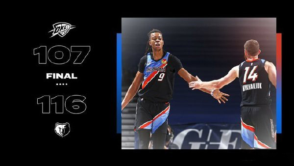 JRS直播网3月25日讯 NBA常规赛雷霆主场迎战灰熊,两支球队近来都取得2连胜,不过雷霆多名球员缺阵。开场后灰熊内外开花早早建立领先,但雷霆掀起反扑又追上比分。第二节雷霆通过轮换阵容的出色发挥完成反超,上半场雷霆53-49领先灰熊。下半场回来雷霆延续状态接连拿分,但此后雷霆进攻断电,灰熊则是趁势掀起反扑夺回领先,莫兰特内突外投带领灰熊巩固优势,第四节灰熊牢牢守住领先没有给雷霆翻盘机会,最终灰熊116-107成功复仇雷霆获得3连胜。