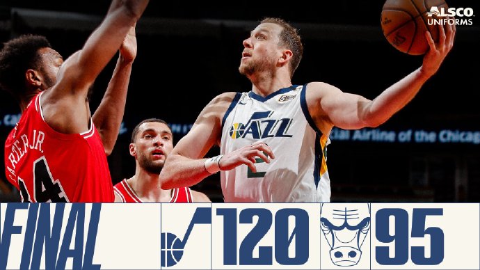 JRS直播网3月23日讯 爵士今日迎来自己5连客的最后一个对手公牛,这波赛程的前4场爵士取得2胜2负表现一般,公牛则在上一场击败活塞后结束2连败。首节开局爵士慢热导致大部分时间打的比较被动,不过公牛在大好局面下突然遭遇哑火拱手让出主动权,他们第一节末至第二节初长达7分30秒里一分未得,而爵士期间火力全开打出一波19-0的攻势一举扭转并取得12分的领先进入下半场。第三节开局爵士打出强硬防守可以说为比赛胜负早早奠定基础,他们让公牛开局3分钟里仅得到2分,而自己则连砍9分将领先扩大至20分以上,至此爵士牢牢掌控比赛,公牛虽然小范围打出反击但对巨大分差制造不了实质性的威胁。最终,爵士客场轻松击败公牛为5连客场之旅收官。