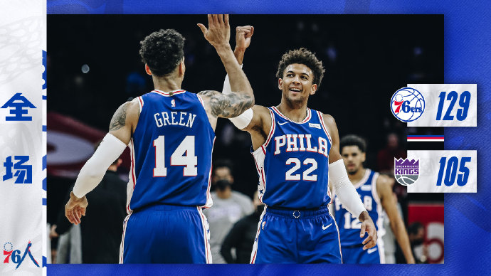 JRS直播网3月21日讯 NBA常规赛76人主场对阵国王,76人目前仍旧占据东部榜首,不过76人多名主力缺阵,国王近来还不错取得2连胜。开场后格林上来就连中3个三分为76人吹响进攻号角,虽然希尔德手感也不错频频砍分,但在哈里斯带领下76人全队火力全开迅速拉开比分,首节他们就建立起21分优势。第二节希尔德手感仍旧火热接连命中三分,但76人整体状态出色,米尔顿和哈里斯接连砍分,上半场76人73-52仍旧大比分领先。下半场回来76人率先发力一度领先到34分,虽然此后国王又追回一些分数,但无奈分差太大,最终76人129-105大胜国王。