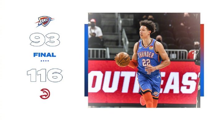 雷霆:波库舍夫斯基4分6板,罗比8分5板,霍福德11分6板,多特8分,亚历山大19分3板4助,威廉姆斯10分6板,杰罗姆18分,马勒登10分2板4助