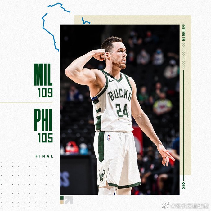 雄鹿(26-14):字母哥32分15篮板5助攻,米德尔顿15分4篮板2助攻2断,大洛14分7篮板2助攻1断1帽,霍勒迪19分6篮板6助攻3断,迪文岑佐20分8篮板5助攻3断,波蒂斯2分,康诺顿6分12篮板2助攻2断