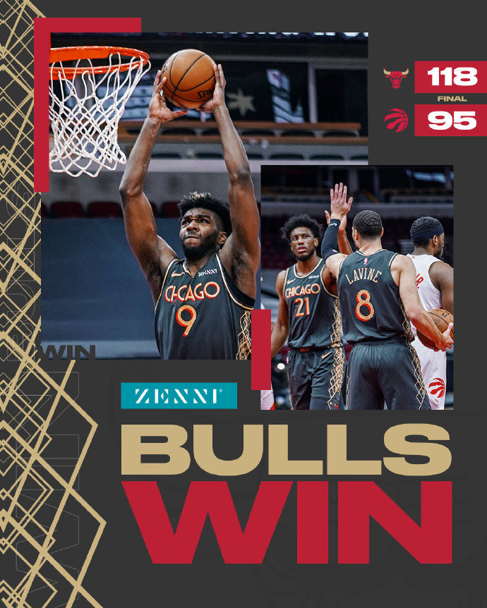 JRS直播网3月15日讯 公牛今日坐镇主场迎来猛龙的挑战,猛龙近期状态糟糕遭遇4连败,3月份来还未尝到胜绩,公牛这边状态同样一般,他们最近5场比赛输掉了4场。首节争夺两队都取得过领先,不过猛龙在取得领先后突然遭遇莫名哑火,公牛抓住猛龙首节最后4分30秒里仅得3分的发挥反超6分结束第一节,次节争夺公牛凭借节中7-2的攻势拉开10分左右的分差并一路占据上风,猛龙间歇性的哑火导致分差始终无法缩小,半场结束时公牛取得9分领先。下半场猛龙的哑火就像“上好发条”一样关键时刻就出现哑火,他们几次尝试追近比分但是间歇性哑火很快便被对手拉开,末节瓦伦丁暴走连中三记三分后,公牛确立起18分的领先奠定胜局。最终,公牛轻取猛龙并送后者5连败。