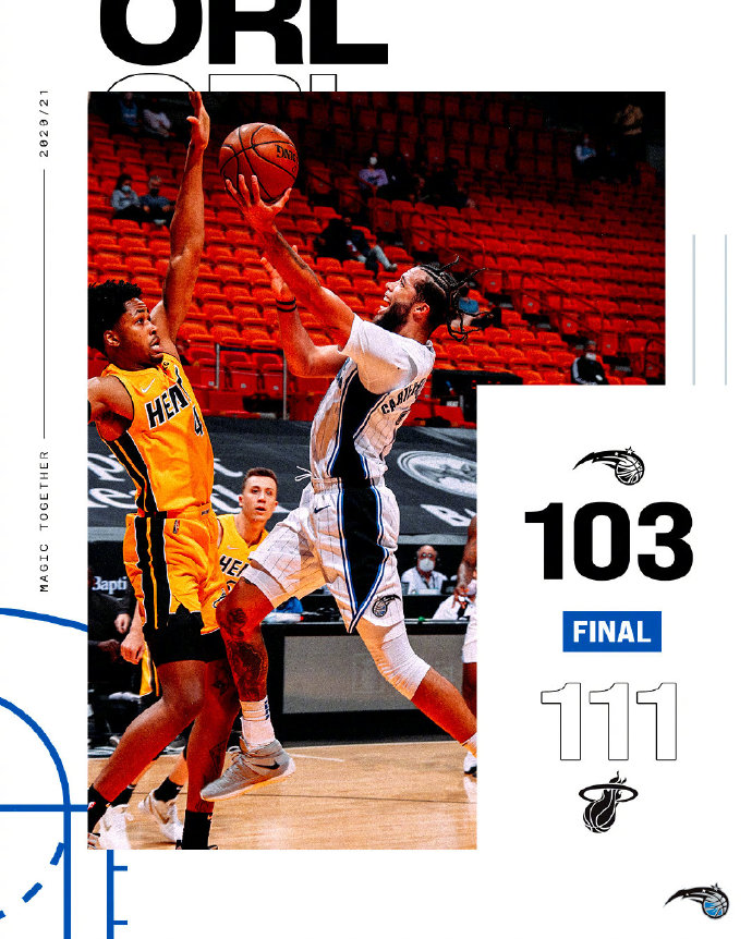 JRS直播网3月12日讯 NBA常规赛,全明星假期过后,五连败的魔术奔赴迈阿密客场挑战热火,后者状态正盛,上一场击败鹈鹕取得近十场比赛的第七场胜利,目前位居东部第六。前者上一场惨遭老鹰逆转,遭遇五连败,目前排名东部倒数第二。本场比赛阿德巴约、富尼耶、特伦斯-罗斯因伤缺战,莱昂纳德因为不当言论被禁赛一周,阿隆-戈登则迎来复出。首节缺阵15场后复出的阿隆戈登表现不俗,开局连续得分为球队鼓舞士气。热火13中6的三分球一度为球队取得7分领先,但节末被魔术打出9-0攻击波将比分反超。次节开局,双方命中率都不高,后半段双方开始互飙三分,两队始终保持交替领先的状态,谁也没能拉开分差。凭借半场11记三分的出色手感,热火微微领先结束上半场。易边再战,双方轮流打出高潮,魔术培根突然发力,一人连得8分帮助球队反超比分,随即被热火反打一波6-0。随后双方展开拉锯战,最终以82平进入第四节决战。末节上来,魔术依靠武切维奇在内线的优势和牵制力以及培根的火热手感不停取分,热火则在巴特勒的率领下稳扎稳打始终保持着领先优势,并在最后一分钟将分差拉开到10分,最终魔术客场不敌热火,苦吞六连败。