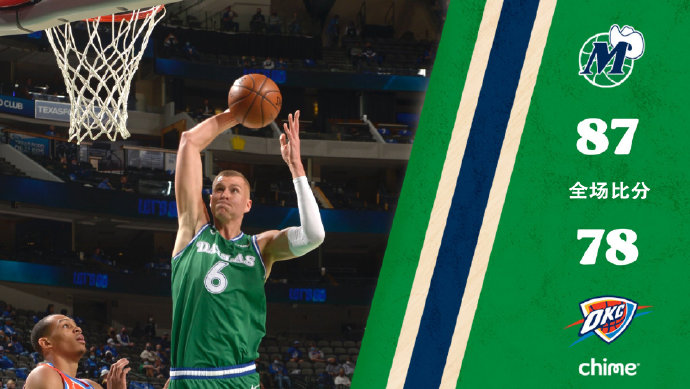 JRS直播网3月4日讯 NBA常规赛独行侠主场迎来雷霆,独行侠近来状态不错取得2连胜。开场后波尔津吉斯带领独行侠率先取得领先,此后雷霆依靠外线火力追上比分,首节独行侠略微领先。第二节刚回来两队仍旧处于僵持的状态,不过在第二节后半段独行侠依靠中距离稳定投射再次取得领先,上半场过后,独行侠49-42领先雷霆。下半场回来贝兹利率先发力追分,不过哈达威马上站出来还以颜色,独行侠外线逐渐找到手感将分差拉大到两位数。第四节独行侠更是一度领先到20分,两队手感都不太理想,雷霆追分无望,最终独行侠87-78轻松拿下雷霆取得3连胜。