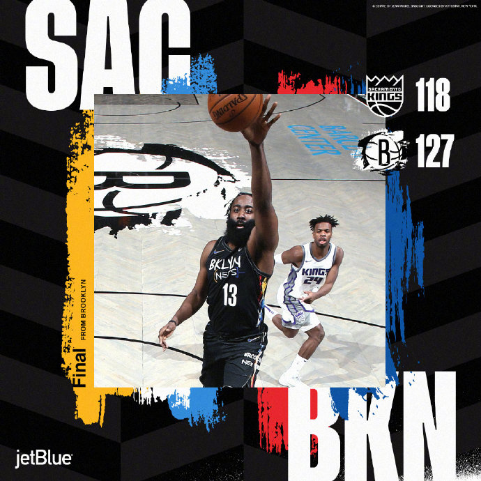 JRS直播网2月24日讯 篮网带着6连胜的状态回到主场迎来国王的挑战,国王方面状态非常糟糕已经遭到7连败,本场比赛杜兰特继续缺阵,不过受伤的克拉克斯顿和新援香珀特都迎来赛季首秀。首节对决篮网延续火热状态打出疯狂进攻,欧文单节送出14分,哈登送出7+4+6的全能数据,篮网单节轰下42分首节就取得14分领先,次节篮网节中5分钟里的哑火给了国王机会,国王期间一波10-2的攻势迅速追上比分,而在随后对决中国王不落下风,篮网半场结束时领先变成了6分。第三节的篮网打的非常被动,巴格利和哈利伯顿节末联手拿下10分一度带队反超比分,不过第四节篮网在被动中很快掌控比赛,节末一波14-3的攻势重新确立起两位数领先杀死比赛。最终,篮网主场击退国王迎来7连胜,国王则遭遇8连败。