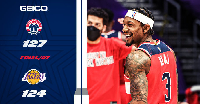JRS直播网2月23日讯 最近4场比赛输掉3场的湖人重整旗鼓迎来奇才的挑战,和湖人相反的是,奇才近期连克强敌取得4连胜状态正佳。湖人首节和奇才僵持半节时间后,依靠着哈雷尔连砍8分的表现突围而出取得领先,而在次节他们抗住了奇才的追赶稳守两位数领先,詹姆斯半场贡献13分7助攻的数据帮助湖人建立起14分的领先。然而下半场场面风云突变,奇才在第三节末段用一波16-4的进攻高潮迅速追上比分,末节中段再送10-0的攻势上演大逆转。不过关键时刻湖人接连命中三记三分抹平比分,但詹姆斯最后关键加罚不中错失良机,比赛拖入加时。加时赛中威少联手比尔拿下全部的12分成为取胜功臣,而湖人一路追分被动一直没能扭转局势。最终,奇才逆转湖人迎来5连胜,而湖人遭遇3连败。