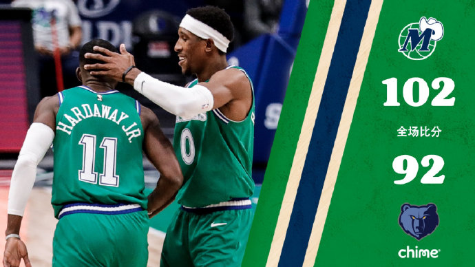 JRS直播网2月23日讯 独行侠坐镇主场迎战灰熊,本场比赛既是莫兰特和东契奇两位新星之间的直接对话,也是两支争夺季后赛球队的关键战役,波尔津吉斯和狄龙因伤缺席。首节比赛灰熊全队进攻哑火,开局8分钟时间内仅得5分,独行侠则在理查德森的带领下打出18-5的攻击波,首节便确立了13分的领先优势。次节,虽然东契奇一直没能找回手感,但独行侠的角色球员依旧给力,布伦森和小哈达威接连爆发,两人单节合砍21分彻底打崩灰熊,独行侠带着18分的优势结束上半场。第三节东契奇终于复苏,突破连得7分帮助独行侠牢牢把控着比赛节奏,虽然莫兰特也有所发挥,但灰熊全队糟糕的三分手感却让他们始终无法缩小分差。末节灰熊只能依靠突破抛投零敲碎打的上分,与另一边东契奇和小哈达威连续命中三分形成了鲜明的对比,虽然顽强的灰熊竭尽全力缩小分差,无奈之前的差距过大,最终独行侠主场以102-92轻松击败灰熊。