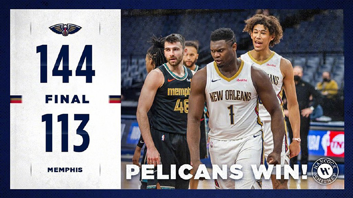 鹈鹕(12-15):锡安31分7篮板6助攻,英格拉姆22分7助攻,哈特27分9篮板,鲍尔13分3篮板5助攻,埃尔南戈麦斯14分8篮板,布莱德索7分3篮板5助攻,亚当斯8分7篮板3抢断。