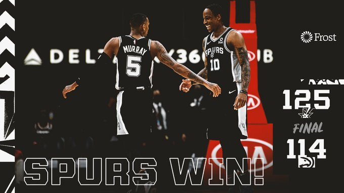 JRS直播网2月13日讯 开启七连客牛仔之旅的马刺第一站来到了亚特兰大挑战老鹰。阿尔德里奇的继续缺阵,让本就捉襟见肘的马刺内线轮转雪上加霜,老鹰方面,隆多&博格达&亨特&邓恩的多人缺席则使球队后场实力大打折扣。比赛开局马刺率先进入比赛状态,状态火热的德罗赞连续打中单节14分,率领马刺占据主动,特雷-杨也独得17分给予回应,次节马刺一波41-19的进攻高潮彻底奠定领先优势,半场轰下赛季新高的77分,而老鹰在进攻端的断电,也带着29分的落后进入中场休息。第三节开场约翰逊连得10分,分差被拉开到了39分,溃不成军的老鹰只能通过卡佩拉的篮下捡漏勉强得分,而巨大的分差也使本场比赛早早失去了悬念,最终马刺在牛仔之旅的第一场比赛中,以125-114大胜老鹰,避免连败。