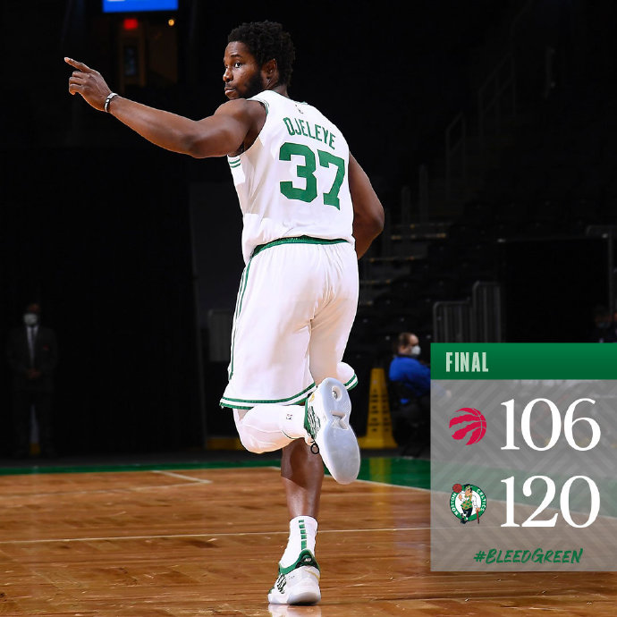 JRS直播网2月12日讯 今日凯尔特人坐镇主场迎战猛龙。赛前,猛龙队两连胜12胜13负排名东部第五,凯尔特人12胜11负排名东部第四。凯尔特人近七战输掉了五场,本场比赛斯玛特与罗伯特-威廉姆斯缺阵。首节上来凯尔特人先声夺人获得十分领先优势,猛龙则稳扎稳打,步步迫近,无奈第一节末段塔图姆接连助攻队友命中三分,双方以五分分差结束首节。次节,凯尔特人三分线上手感火热,单节命中六记三分,领先十分结束上半场。下半场开始后,凯尔特人续上三分线外火力,猛龙三分线外也略有起色,在第三节后半段,双方陷入一段时间得分荒,最终凯尔特人领先八分进入末节。末节一上来,凯尔特人就凭借两记三分迅速将比分扩大至十分以上,猛龙则依靠突破内线始终紧咬比分,最后阶段沃克与塔图姆稳定发挥一波10比0带走比赛。最终凯尔特人以120-106击退猛龙,结束自己两连败的同时终结对手二连胜。
