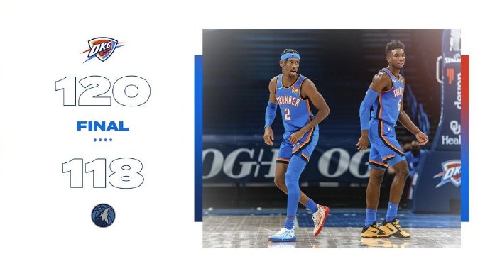 JRS直播网2月7日讯 NBA常规赛雷霆主场对阵森林狼,开场后雷霆迅速进入状态以10-0开局,此后两队进攻节奏飞快,亚历山大带领雷霆不断拉大分差,第一节雷霆领先19分。第二节回来两队仍旧是大打对攻战,森林狼毫不示弱连续对飚得分,上半场雷霆83-62领先森林狼。下半场回来风云突变,里德独得13分为森林狼吹响反击号角,雷霆进攻陷入困境,森林狼一路缩小分差并且在第四节完成反超,雷霆及时咬住比分并且在最后关头取得领先,里德绝平勾手不中,雷霆120-118力克森林狼。
