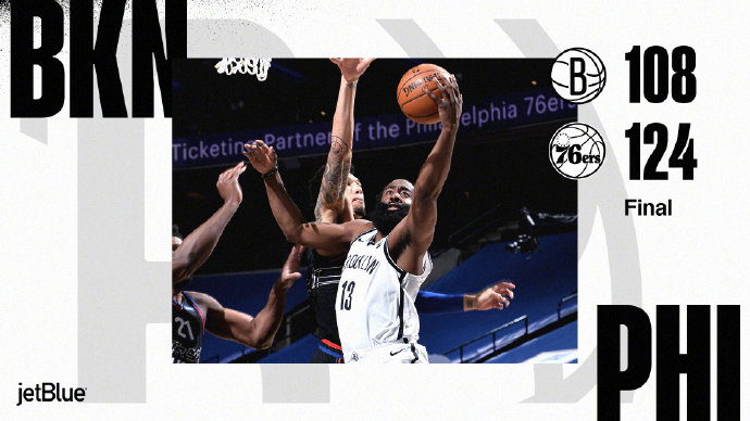 JRS直播网2月7日讯 在上一场主场不敌猛龙之后,篮网马不停蹄的赶往费城挑战76人,杜兰特由于接触新冠阳性患者被隔离无法出战,而欧文因手指扭伤缺阵,因此本场是哈登加盟篮网之后首次独自带队的比赛。独自带队的哈登首节“既当爹又当妈”,他在第一节送出9+4+5的全面数据带队和76人周旋,而在次节篮网曾依靠一波11-2的攻势扭转局面,奈何刚刚抢到领先就迅速陷入得分荒,76人用一波7-0的攻势取得3分领先进入下半场。第三节开局篮网表现还算不错,哈登单节攻下13+3+3的数据一直带队咬住比分,但又是后半节的轮换导致局面迅速下滑加之防守端崩盘,76人在内外开花中打出一波22-7的攻势,单节42分的表现打穿了篮网防线并确立起15分领先。末节篮网没有任何反扑征兆比分也一直维持在两位数之上。最终,76人轻取篮网巩固自己东部榜首位置。