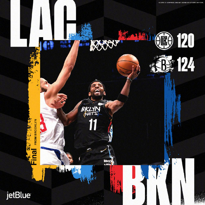 JRS直播网2月3日讯 NBA常规赛快船客场挑战篮网,快船3连胜后占据西部第一。开场快船顺风顺水早早取得10分领先,莱昂纳德和乔治两人轮番拿分,不过篮网三巨头轮流拿分咬住比分,第二节篮网内外开花缩小分差,雷吉和小莫里斯发挥出色,不过杜兰特和欧文也马上回敬攻势,上半场快船58-51领先1分。下半场回来欧文不断送上个人表现拿分,不过巴图姆外线手感火热,莱昂纳德也连连拿分,三节过后快船仍旧守住领先。但第四节欧文仍旧状态神勇帮助篮网一举反超比分,最后时刻两队罚球大战,篮网有惊无险地拿下胜利,最终篮网124-120逆转终结快船3连胜。