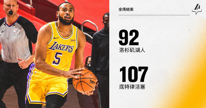 JRS直播网1月29日讯 湖人今日继续自己的7连客之旅,今天他们来到汽车城底特律挑战活塞,湖人在上一场惨遭76人绝杀结束3连胜,除此之外,浓眉哥因右大腿肿胀原因缺席比赛。首节比赛两支球队展开激烈对攻,虽然缺少了浓眉哥,但詹姆斯命中三记三分一人砍下14分撑起球队进攻,不过活塞这边多点开花并在节末用一波9-0的攻势取得领先,次节除了詹姆斯外,塔克成为奇兵节中连拿8分带队反超比分,半场结束时湖人取得2分领先。下半场易边再战的湖人整体状态糟糕,他们整个下半场都占不到太大的便宜,而在第四节节中长达7分钟的哑火直接导致败局,活塞期间送出16-0的攻势确立起17分领先奠定胜局。最终,湖人不敌活塞败走汽车城,同时遭遇赛季首次连败。