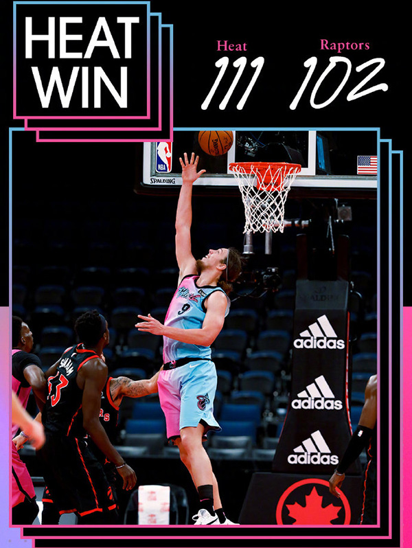 JRS直播网1月21日讯 猛龙坐镇主场迎战热火,此役巴特勒、希罗等继续缺阵。首节邓肯-罗宾逊连中三分,帮助热火取得领先。但猛龙在次节找到外线手感给予回敬,在半场结束以58-56成功反超比分。易边再战,纳恩在第三节里突外投连续砍分,率领热火重夺领先。而猛龙在末节未能掀起追分攻势,反而陷入长达5分钟的得分荒,热火捉住机会进一步拉开比分。最终,6人得分上双的热火在客场以111-102击败猛龙,取得2连胜,同时终结了猛龙的3连胜。