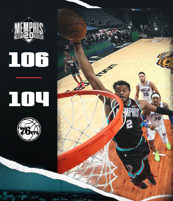 JRS直播网1月17日讯 灰熊今日坐镇主场迎来76人的挑战,缺席了半个月的莫兰特本场迎来复出,76人这边恩比德则因右膝盖疼痛缺阵。首节比赛灰熊在开局慢热的情况下及时找到感觉并迅速追上比分并在第二节出迅速反超比分,76人前半节依靠西蒙斯9分3篮板2助攻的表现尚能咬住比分,但后半节集体哑火,灰熊在莫兰特的带领下送出10-3的进攻取得6分领先结束上半场。第三节灰熊很快便将优势扩大至两位数,76人仅仅抵抗了半节时间又一次末段哑火,灰熊节末再送10-2的攻势取得12分领先。然而末节米尔顿的突然爆发改变走势,他这一节独砍15分帮助76人不断蚕食分差并看到翻盘希望,而莫兰特最后一刻失误给了76人绝杀机会,不过哈里斯随后同样失误葬送良机。最终,灰熊险胜76人迎来4连胜。