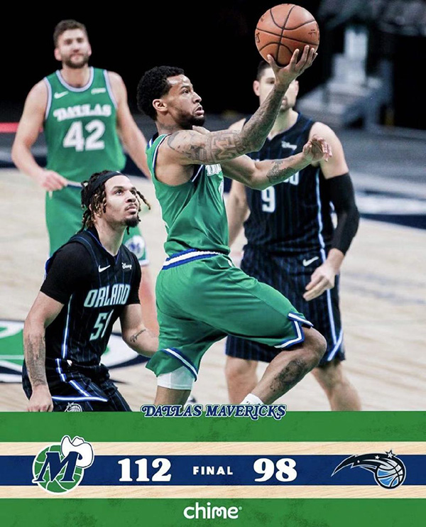 JRS直播网1月10日讯 独行侠坐镇主场迎战背靠背的魔术,此役独行侠外线手感火热,哈达威、伯克和东契奇等连中三分,帮助独行侠在上半场一路保持领先。易边再战,哈达威延续手感联手东契奇轮番得分,带领独行侠进一步扩大领先优势,武切维奇末节率队反扑未果。最终,独行侠以112-98击退魔术,取得3连胜。