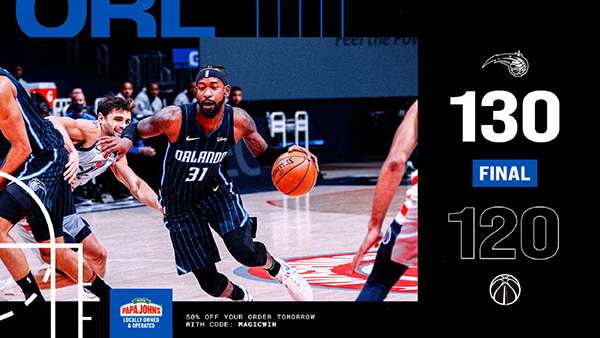 JRS直播网12月27日讯 奇才今日坐镇主场迎来魔术的挑战,首节比赛两支球队交替得分一路僵持,第二节魔术在罗斯的带领下用一波10-2的攻势抢占上风,但顽强的奇才总能做出应对之策并将比分缩小至3分结束上半场。下半场威少在进攻端状态有所复苏,而奇才也一度在第三节实现比分反超,但魔术攻势更盛并在第四节逐渐占据上风,最后时刻的对决魔术连着4个回合全部转化成得分并守住优势奠定胜局。最终,奇才无力翻盘,魔术击败奇才迎来新赛季两连胜,奇才则遭遇2连败。
