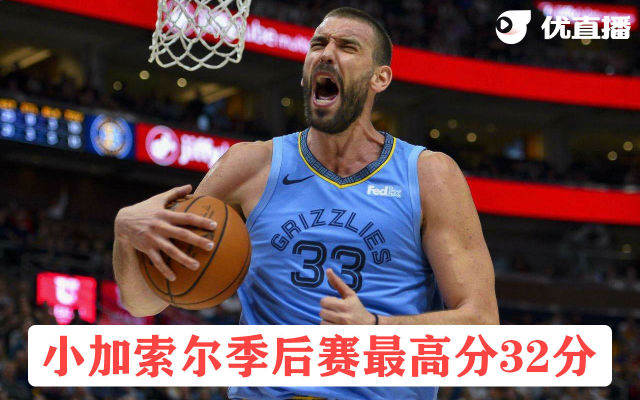 【球星生涯最高分系列:小加季后赛32分】2016-17赛季季后赛首轮第一场,灰熊客场挑战马刺,状态上佳的小加索尔在34分钟的时间里18投11中(其中三分3/3)砍下个人季后赛最高32分,不管面前的防守人是戴德蒙,阿德还是熟悉他的亲哥哥保罗-加索尔,他都能不断的用扎实的身板、灵巧的脚步和精准的投篮完成得分!无奈球队除他之外,进攻端如坠冰窖,首节过后就陷入了如篮筐盖盖的取分艰难模式,最终82-111负于对手。