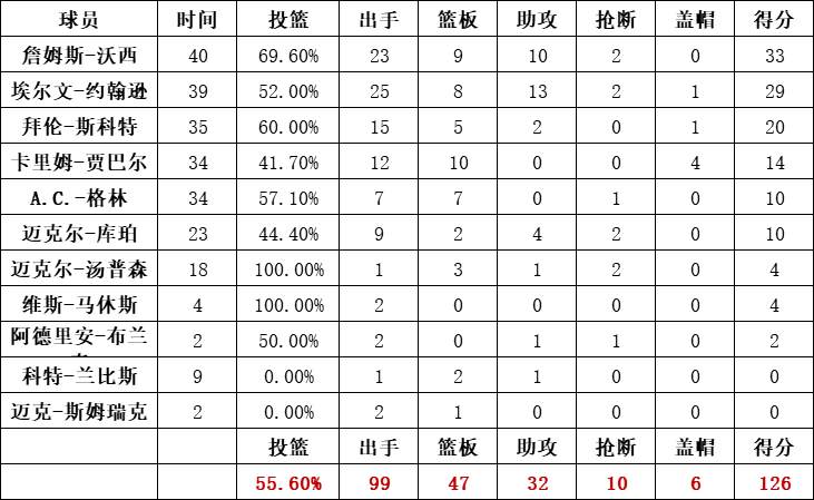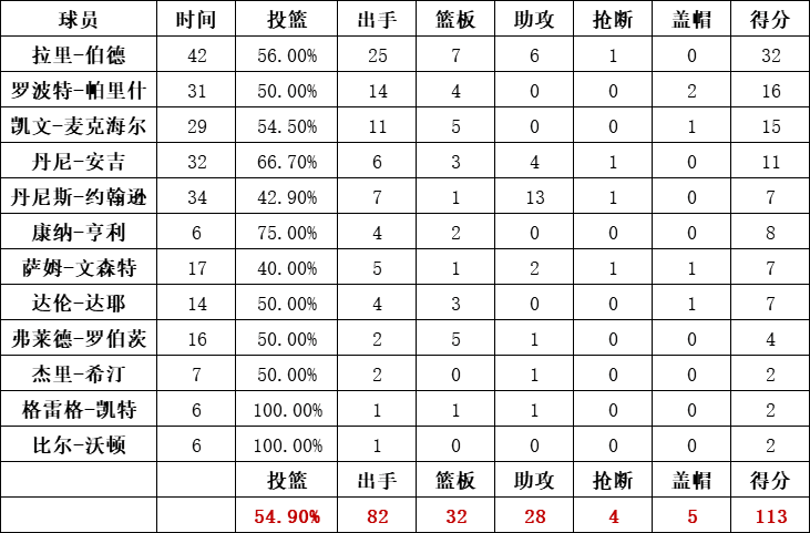 湖人队统计: