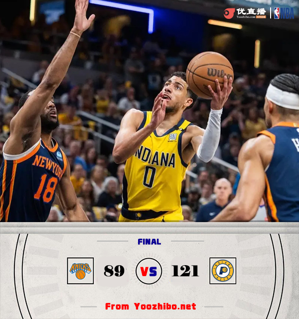 JRS直播网5月13日讯 NBA季后赛东部半决赛G4,步行者今日迎战尼克斯,上场比赛步行者回到主场扳回一城,目前大比分1-2落后,此役阿努诺比继续缺战。比赛上来,步行者就迅速进入状态并利用一波9-0的小高潮取得领先,分差在首节末段已经突破了二十分,整个第一节尼克斯的进攻表现糟糕只拿到14分,次节步行者依旧占据着场上的主动权,连续两个单节拿到30+的得分,半场结束时尼克斯已经落后28分;下半场回来,尼克斯还是没能扭转场上局势,三节就让步行者拿到了101分,分差也是达到了38分,比赛在末节彻底沦为垃圾时间,最终步行者大胜尼克斯,将大比分追至2-2平。