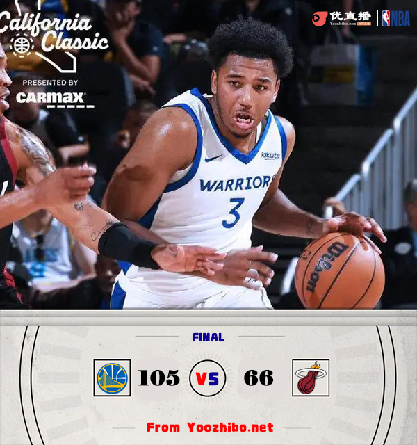 JRS直播网讯 7月7日讯 NBA夏季联赛加州经典赛,勇士对阵热火,勇士选秀大会主要选中52号秀波斯特,而热火则是选中15号秀韦尔和44号秀拉松。比赛开始,勇士上来就率先进入状态打出8-2不错开局,随后热火强势回应8-0反超分,伊森-汤普森手感不错帮助勇士首节领先7分,次节双方展开拉锯战,勇士外线保持火力,斯威德接连3记三分帮助热火咬住比分,但伊森-汤普森继续火热状态半场拿到15分,比克曼追身压哨三分再进助勇士半场领先16分。下半场,普劳登上来连续3记三分,个人打出11-0直接领先27分,又是斯威德站出来止血,双方围绕着30分左右的分差展开拉锯战,末节普劳登继续三分,但随后受伤离场,但热火抓不住机会,勇士直接拉开40分以上领先,最终勇士105-66大胜热火。