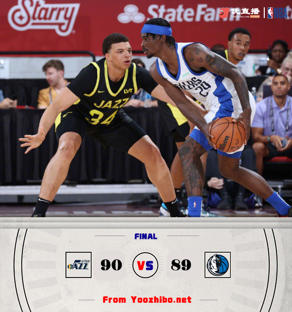 JRS直播网 7月14日讯 NBA夏季联赛继续进行,独行侠对阵爵士,爵士这边洛夫顿和贝兹利领衔,去年的9号秀亨德里克斯和今年的10号秀科迪-威廉姆斯、布朗尼的南加大队友科利尔在列,独行侠这边,普罗斯珀和AJ-劳森领衔出战。此役一上来爵士率先找到节奏,菲利波夫斯基和科利尔内外开花,率队打出9-2开局,末段布兰登-威廉姆斯率队回敬8-2小高潮,首节结束时爵士领先1分,次节回来,戈特曼飚中反超三分,两队拉开架势展开对攻,半场战罢,独行侠反超1分。短暂调整后双方继续僵持,但中段爵士进攻哑火,独行侠一波9-2拉开比分,三节结束后独行侠领先6分,末节上来,独行侠进攻突然断电,爵士顺势轰出14-0进攻高潮,独行侠内线连续取分稳住阵脚,决胜时刻洛夫顿抢板推人犯规,但劳森两罚一中,随后洛夫顿突破上篮造犯规,独行侠挑战失败,洛夫顿两罚一中后独行侠绝杀未果,最终爵士90-89险胜独行侠。
