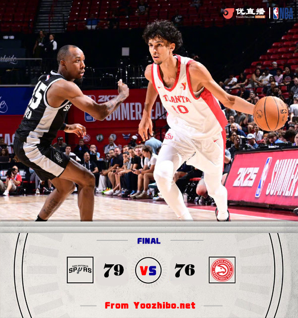 JRS直播网 7月15日讯 NBA夏季联赛,马刺今日对阵老鹰,前者取得两连胜,后者上场比赛则是输给了奇才,此役马刺4号秀卡斯尔缺战。比赛上来,两队短暂拉锯后马刺打出一波10-0的小高潮将分差拉开到两位数,但之后的两分钟时间里他们一分未得,老鹰连拿七分追了回来,次节双方继续保持拉锯,半场结束时马刺落后1分;下半场回来,两队依旧是打得难解难分,比赛悬念保持到了最后,关键时刻威廉姆斯利用破紧逼的机会拿到两分,随后马刺采用犯规战术不给老鹰绝平机会,最终马刺险胜老鹰,迎来三连胜。