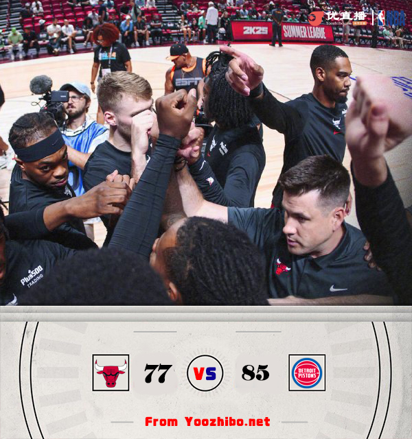 JRS直播网讯 7月16日 NBA夏季联赛,活塞主场迎战公牛,公牛在选秀大会上主要摘得11号秀布泽利斯,而活塞则是选中5号秀霍兰、37号秀克林特曼。比赛开始,公牛上来打出8-2不错开局,霍兰扣篮加三分止血,但布泽利斯接连暴扣帮助公牛很快领先到双位数,双方对攻首节公牛领先14分,次节活塞6-0紧急追分,但公牛里突外投迅速回应7-0,萨瑟接连冲击内线加上三分继续追至个位数分差,半场活塞只落后6分。下半场,萨瑟上来连进2记三分一度帮助活塞追平比分,公牛4名球员各自扔进三分迅速止血并重新拉开双位数领先,好在活塞马上小高潮回应,麦考伊压哨三分重新追到差2分,末节活塞上来又是打出9-0直接反超比分,打了3分多钟菲利普斯上篮2+1终于止颓,但霍兰接连反击还是帮助活塞重新领先9分,最终活塞85-77逆转公牛。