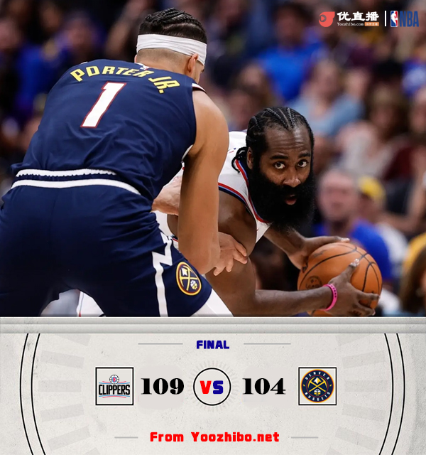 JRS直播网10月27日讯 NBA常规赛,掘金主场迎战快船,首场比赛两队都吃到了开门黑。比赛开始,快船上来很是慢热,哈登先串联球队首节就送出7助攻,而掘金依然靠约基奇撑起进攻,双方展开拉锯战,哈登外线开和,首节快船领先8分,次节威少接连误攻,快船连续反击一波14-0直接拉开比分,约基奇连续外线发炮,掘金连续4记三分强势回应,半场掘金追到差6分。下半场,穆雷开始接连远投发挥,约基奇上篮一度追平比分,哈登继续喂饼祖巴茨,双方展开拉锯战,布劳恩反击反超比分,三节掘金反超1分,末节约基奇连续外线发炮砍下11分帮助掘金扩大领先,但鲍威尔里突外投连砍15分强势咬住,比赛进入白热化,鲍威尔关键三分再次追平,掘金关键挑战失败哈登两罚领先,约基奇关键追平罚篮丢一个后绝平三分又不进,最终快船109-104险胜掘金,拿到首胜的同时送对手连败。