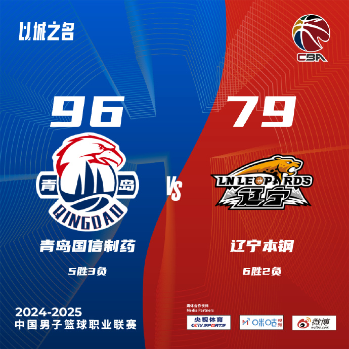 JRS直播网10月28日讯 CBA常规赛,青岛主场迎战辽宁,本场比赛赵继伟因伤缺阵。比赛开始,双方开局都比较慢热,辽宁打了半节得分没上双,青岛外线多点开局建立双位数领先,辽宁始终没有进攻端手感,首节青岛领先15分,次节辽宁上来打出11-0直接追上比分,双方展开拉锯战,韦瑟斯庞里突外投稳住局势,弗格有投有传继续追分,半场辽宁追到差4分。下半场,米切尔连砍6分,青岛重新拉开比分,又是弗格站出来止血,辽宁一度追到差2分,末节辽宁继续追分,王睿泽接连三分命中,韦瑟斯庞里突外投连砍6分稳住局势,青岛始终保持两球以上领先,最终青岛96-79力克辽宁。