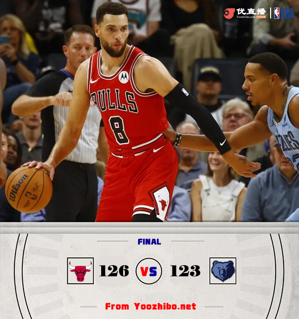 JRS直播网10月29日讯 NBA常规赛,灰熊主场迎战公牛。上半场,灰熊率先发力,多点开花很快取得两位数领先,次节双方大打对攻,公牛内外开花连续拿分,灰熊不断冲 击篮迅速回应,半场战罢灰熊68-54领先公牛。下半场,双方依旧火力很猛,公牛外线发力连中三分不断缩小分差,末节灰熊命中率下降,公牛持续输出反超比分,灰熊苦苦追赶无果。最终,公牛126-123力克灰熊。