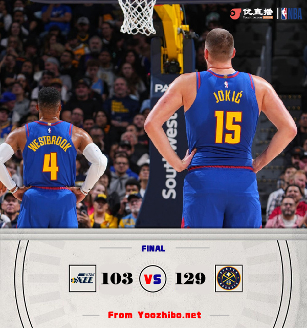 JRS直播网11月3日讯 NBA常规赛,掘金主场迎爵士,本场比赛马尔卡宁和克拉克森缺阵,贾马尔-穆雷也不打。比赛开始,双方上来展开对攻,小波特接连三分单节上双,掘金一波15-0超级攻击波直接建立领先,朱赞成为爵士替补奇兵,连续冲击内线造杀伤止血,首节掘金领先11分,次节掘金进攻端受阻,爵士全民皆兵开始追分,但掘金也都能回应,半场掘金还领先9分。下半场,约基奇终于发力,里突外投单节狂砍18分,掘金打出进攻高潮直接拉开20分以上领先,末节双方都换上替补练兵,但掘金还是能保持住20分以上领先,最终掘金127-103轻取爵士,送对手6连败。