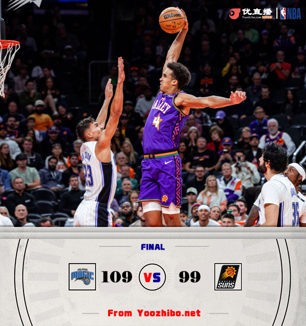 JRS直播网11月19日讯 NBA常规赛,太阳今日迎战魔术,前者近来情况不佳遭遇三连败,后者则是取得五连胜,此役杜兰特、比尔、努尔基奇和班凯罗等人缺战。比赛上来,魔术就率先进入状态打出7-0的开局取得领先,好在是琼斯外线找到手感,连续的三分帮助太阳咬住比分,首节后半段分差没有再拉开,不过到了次节魔术的进攻完全打开,他们单节轰下38分,半场结束时已经落后16分;下半场回来,两队的命中率都出现明显下滑,单节打出20-20的比分,到了末节太阳虽然有追分的势头但终究没能获得逆转机会,最终魔术轻取太阳,迎来六连胜的同时也送给后者四连败。