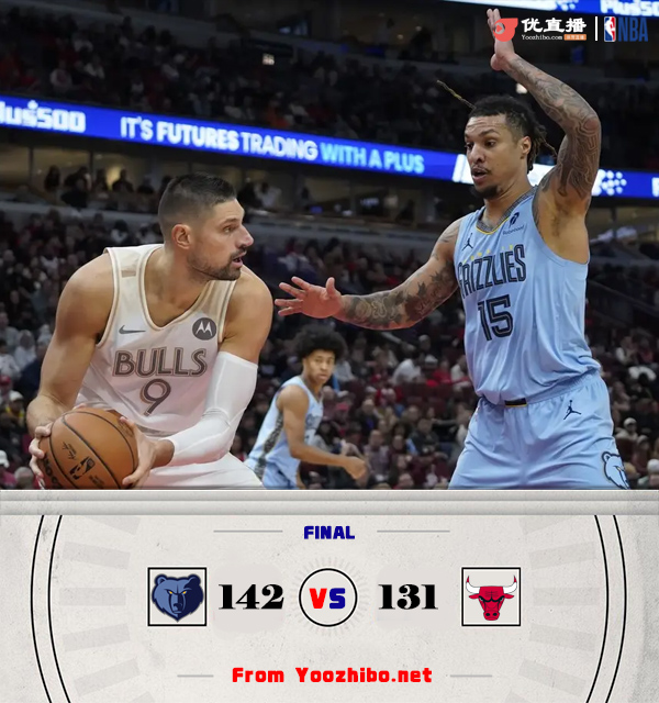 JRS直播网讯11月24日 NBA常规赛,公牛今日迎战灰熊,前者上场比赛不敌老鹰,后者则是战胜76人,此役莫兰特、斯玛特和埃迪缺战。比赛上来,灰熊就率先进入状态打出9-2的开局取得领先,公牛虽然连拿六分给出回应,但整个第一节他们始终处于落后,次节双方展开对攻,灰熊一度将分差拉开到了两位数,不过节末被公牛连续追分,半场结束时分差仅剩4分,贝恩6中0没有运动战进球;下半场回来,小皮蓬继续着自己火热的状态,单节6中6再拿14分4助攻,在他的带领下灰熊重新建立起两位数的领先优势,末节上来灰熊又是连拿六分继续扩大着分差,公牛没有再获得任何机会,最终灰熊轻取公牛迎来连胜。
