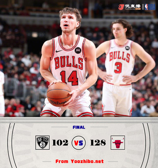 JRS直播网讯北京时间12月3日讯 NBA常规赛,篮网对阵公牛,两队最近都是遭遇2连败,崔永熙本场比赛进入大名单,篮网本场比赛多人轮换。比赛开始后两队你来我往连续打成平手,篮网这边主要靠施罗德进攻,公牛则是布泽利斯扮演奇兵角色外线连连三分命中。第二节虽然篮网一度打出11-3的攻势取得领先,但随后他们进攻断电,公牛回应一波高潮将比分反超。下半场回来公牛攻势连连将分差拉大,篮网进攻端表现不理想,场上分差来到29分,在第四节还剩5分39秒时,崔永熙替补登场,他获得几次出手机会但只打进一个上篮,最终篮网102-128输给公牛遭遇3连败。