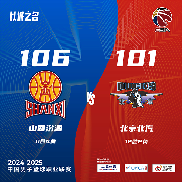 JRS直播网讯北京时间12月9日讯 CBA常规赛,山西对阵北京,北京最近状态不错取得6连胜。开场后山西率先打出攻势以7-0开局,北京靠杰曼和所罗门的发挥追上比分,两队都犯规不断,多次送给对手罚球机会,北京依靠两记三分建立领先。第二节上来两队依旧是犯规频频,周琦补篮加三分连得5分帮助北京巩固优势,张宁和迪亚洛就联手为山西追上比分。易边再战,两队依旧打得十分胶着,而且场上还是犯规不断,奥莫特连续强攻帮助北京取得微弱优势。最后一节回来刘传兴强势发挥帮助山西反超比分,陈盈骏及时站出来连续得分回应,关键时刻张才仁突破分球失误,周琦无脑犯规,张宁罚球稳健,最终山西106-101终结北京6连胜。
