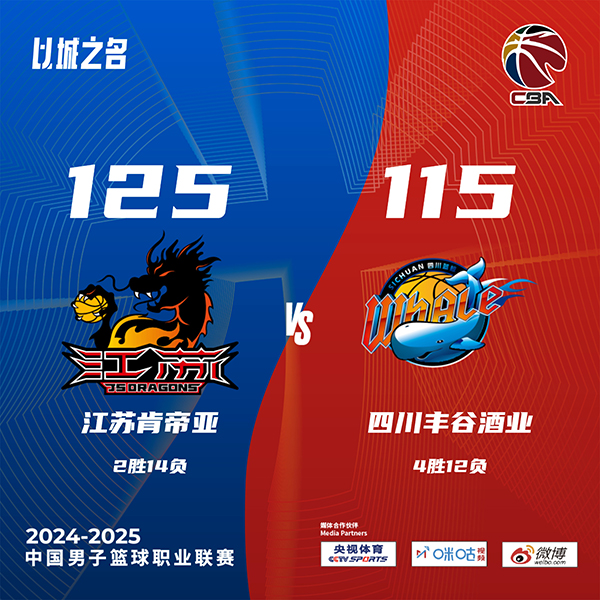 JRS直播网讯北京时间12月11日讯 CBA常规赛,江苏主场迎战四川。江苏1胜14负,四川4胜11负。上半场,江苏率先发力打出14-6的开局,四川内外开花努力追赶,次节双方大打对攻,互相不设防,富兰克林高效输出,萨姆纳和马里奇联手带队给出回应,半场战罢江苏74-62领先四川。下半场,江苏命中率有所下降,双方围绕10分左右的分差展开拉锯战,末节关键时刻江苏稳扎稳打保持优势,四川苦苦追赶无果,最终,江苏125-115力克四川。