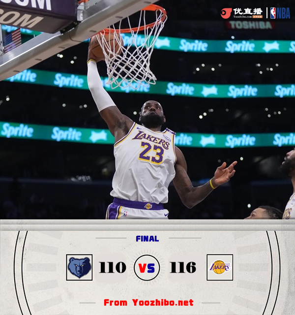 JRS直播网12月16日讯 NBA常规赛,湖人主场迎战灰熊,湖人近期状态不佳,近5战1胜4负;灰熊则是士气正佳,近11战10胜,目前也是经历4连胜。本场比赛詹姆斯复出。比赛开始,詹眉联手攻防建功带队打出9-2不错开局,JJJ带队追分,但浓眉内线阻挡不了,湖人接连反击再打8-0拉开双位数领先,首节湖人领先10分,次节莫兰特命中首个运动战进球带队追分,湖人继续发力10-0拉开15分领先,JJJ苦苦支撑,浓眉继续发力带队一度领先到20分以上。下半场,双方围绕着20分左右分差展开拉锯战,浓眉内线继续取分但肩膀受伤回更衣室,灰熊趁机打出18-5攻击波追至差9分,末节浓眉归来连续中投砍下7分稳住局势,JJJ和八村塁相继6犯毕业,湖人能保持住10分左右领先,最终湖人116-110力克灰熊,终结对手4连胜。