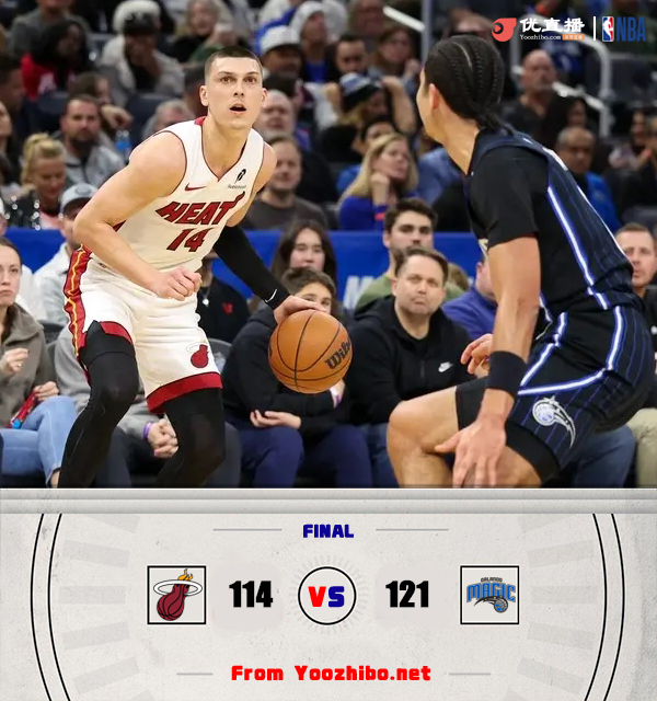 JRS直播网讯 北京时间12月22日讯 NBA常规赛,热火客场挑战魔术。巴特勒今天因病缺阵。热火13胜12负目前东部第六,魔术17胜12负暂列东部第四,但近期已遭遇3连败。上半场,魔术率先发力,高效输出取得领先,希罗得分助攻一肩挑带队反超,大瓦格纳受伤,热火持续发力取得两位数优势,小温德尔-卡特不满判罚连吃2T被驱逐,双方罚球不断,热火轻松将分差拉开到20分,半场战罢热火76-56领先魔术。易边再战,魔术3分钟轰出14-0迫近比分,热火内外开花稳住局势,末节魔术大举反击再度打出15-1的进攻高潮,热火全员哑火,魔术持续发力反超比分并杀死比赛,最终,魔术121-114逆转25分的分差击败热火。