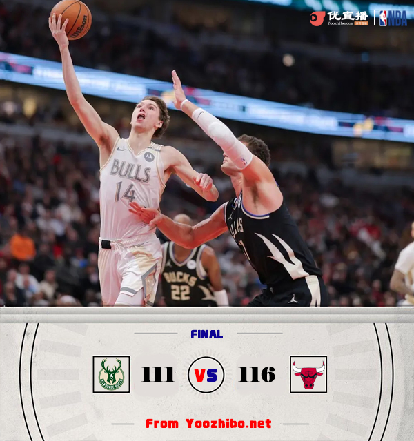 JRS直播网讯北京时间12月29日讯 NBA常规赛激战正酣,公牛和雄鹿两支东部球队直接对话,此前因小腿伤势和非新冠疾病缺席4场的利拉德此役复出,字母哥因生病继续缺阵。此役一上来公牛外线率先开张,雄鹿开局状态慢热,米德尔顿和波蒂斯短暂止血,公牛多点开花确立优势,首节结束时公牛领先8分,次节回来,雄鹿逐渐找到进攻感觉,利拉德连投带罚不断杀伤,大洛联手米德尔顿外线续上火力,雄鹿稳扎稳打缩小分差,半场战罢,雄鹿仅落后2分。易边再战后两队进攻火力放缓,利拉德连投带罚串联全队,公牛找回状态及时回应,双方你来我往比分紧咬,三节结束后雄鹿反超1分,末节决战,基迪突然发力连续取分,公牛迅速夺回优势,决胜时刻雄鹿连续不中,公牛连中罚球锁定胜局,最终公牛116-111力克对手终结3连败。