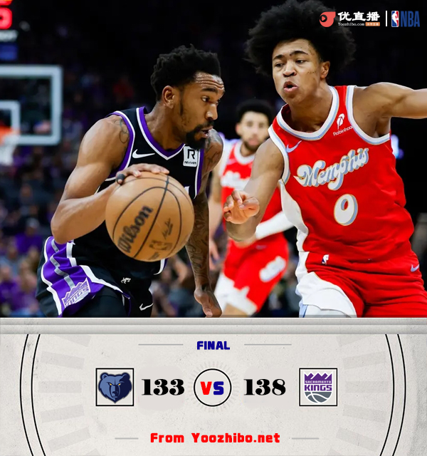 JRS直播网1月4日讯 NBA常规赛,灰熊客场挑战国王。灰熊23胜11负,国王15胜19负。上半场,双方开场便大打对攻,国王里突外投拿分,灰熊多点开花给出回应,蒙克和莱尔斯手感火热,国王首节轰下46分领先灰熊14分,次节灰熊火力更猛,韦尔斯和小贾伦-杰克逊联手带队缩小分差,灰熊次节也砍40分,半场战罢国王76-72领先灰熊。易边再战,国王9-0扩大优势,韦尔斯单节11分帮助灰熊咬住比分,末节双方争夺陷入白热化,福克斯击中小皮蓬头部被吹一级恶意犯规,蒙克连得8分带队取得两位数领先,灰熊苦苦追赶无果。最终,国王138-133力克灰熊,主场过关。