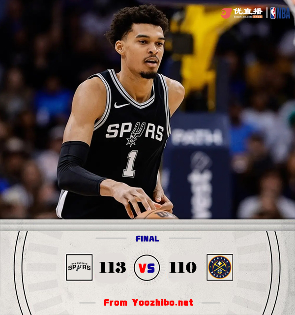 JRS直播网讯北京时间1月4日讯 NBA常规赛今日继续开打,掘金今日坐镇主场迎战马刺,这场比赛是双方两天背靠背二番战里的首场对决。首节之争两支球队状态相当都无法阻止对手抢分,约基奇和文班亚马的对决成为焦点也帮助各自球队抢分,马刺开局率先发难短时间内拉开8分优势,但末段掘金轰出连续三记三分又迅速扭转局面;次节双方继续对攻僵持,约基奇和文班亚马两人都在上半场就拿到两双数据,不过文班亚马的表现稍胜一筹也成功帮助到球队,他先是两记三分拉开比分,末段又连续篮下抢分帮助球队拿到8分优势进入下半场。休息归来掘金迅速进入状态送出16-4的攻势追上比分开启拉锯,末节最后时刻简直神仙交手交替抢分多次互换领先,最后时刻马刺犯下大错给了掘金绝杀球权,不过最后时刻约基奇也犯错,文班亚马抢断杀死比赛。最终,马刺力克掘金拿下比赛。
