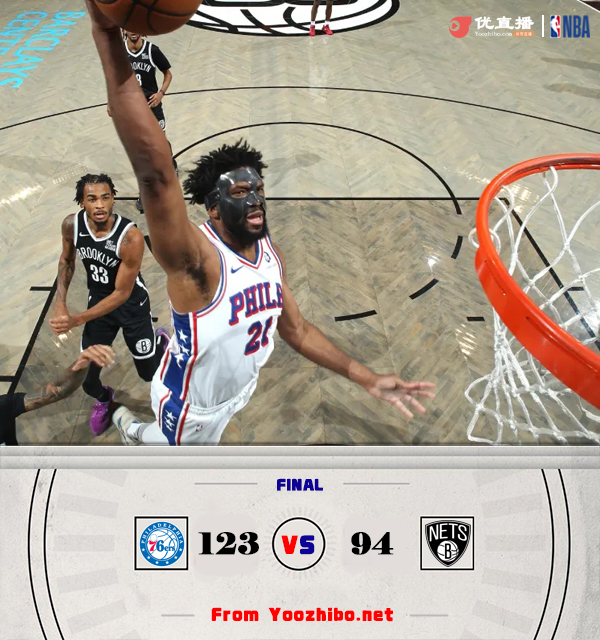 JRS直播网1月5日讯 NBA常规赛,篮网主场迎战76人,篮网目前13胜21负排在东部第12位,76人则是13胜19负排名东部第11。比赛开始,篮网上来3记三分轰出11-0开局,但凯莱布-马丁里突外投止血,76人迅速回应13-2攻击波追平比分,随后恩比德里突外投取分帮助76人领先双位数,次节泰瑞斯-马丁中投终于帮助篮网破荒,双方展开拉锯战,凯莱布-马丁接连取分半场弹无虚发助队半场领先17分。下半场,拉塞尔因伤不会回归,恩比德联手马克西带队打出12-2攻击波一举拉开20分以上领先,随后76人接连外线发炮一度拉开30分以上领先,末节双方逐渐换上替补练兵,76人牢牢掌握20分以上领先,最终76人123-94轻取篮网。