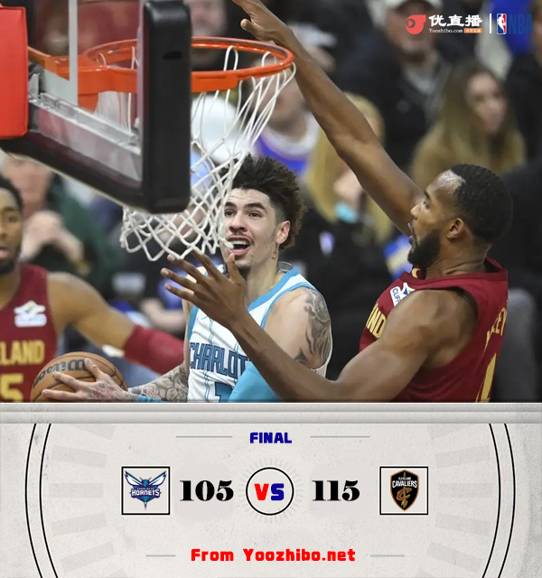 JRS直播网1月6日讯 NBA常规赛,黄蜂对阵骑士,黄蜂最近状态低迷遭遇9连败,本场比赛鲍尔和米勒复出,骑士则是气势汹汹豪取9连胜。开场后骑士内外开花早早建立领先,黄蜂在鲍尔和米勒的发挥下紧准不舍,骑士两度打出攻势都被黄蜂及时回应。第二节上来小莫布里内线强势发挥,加上韦德外线连中三分,骑士一波13-2的高潮将比分拉开,此后黄蜂逐渐找回手感,两队再度陷入拉锯战,半场过后骑士领先15分。易边再战,米勒上来连追两记三分,米切尔站出来接连砍分还以颜色。第四节米切尔延续状态带队将分差拉大到20分以上,比赛失去悬念,最终骑士115-105轻松击败黄蜂豪取10连胜,黄蜂遭遇10连败。